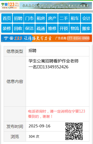 学生公寓招聘看护作业老师一名☎️13349352426