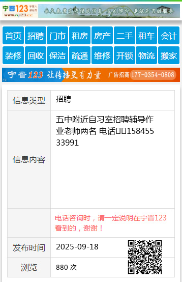 五中附近自习室招聘辅导作业老师两名 电话☎️15845533991