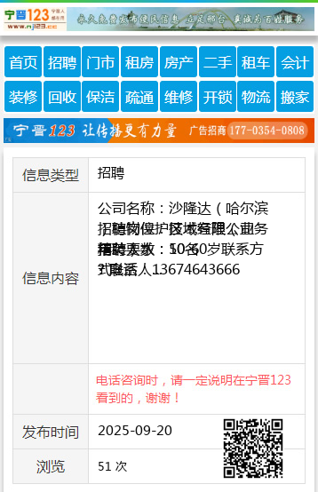 年龄要求:50-60岁联系方式: