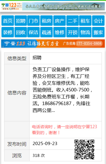 负责工厂设备操作,维护保养及分担区卫生,有工厂经验,会叉车维修优先,能吃苦能倒班。收入4500-7500,五险免费班车工作餐,长期活。18686796187,先锋往西两公里 【电话咨询时,请一定说明在望奎信息网看到的,谢谢!】 |