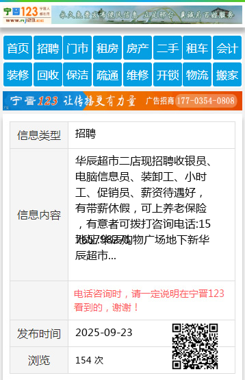 华辰超市二店现招聘收银员、电脑信息员、装卸工、小时工、促销员、薪资待遇好,有带薪休假,可上养老保险,有意者可拨打咨询电话:15765798271