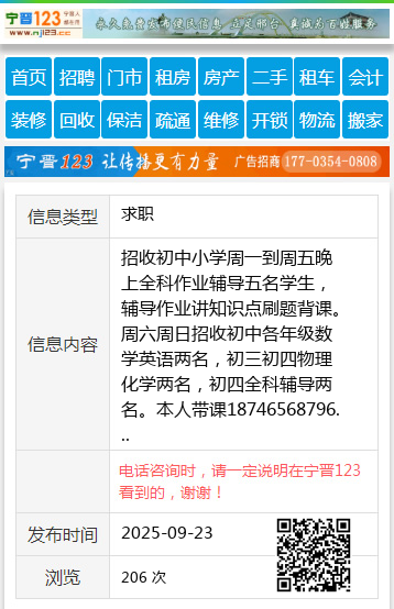 招收初中小学周一到周五晚上全科作业辅导五名学生,辅导作业讲知识点刷题背课。周六周日招收初中各年级数学英语两名,初三初四物理化学两名,初四全科辅导两名。本人带课18746568796 【电话咨询时,请一定说明在望奎信息网看到的,谢谢!】 |