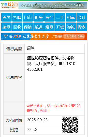 盛世鸿源酒店招聘、洗浴收银、大厅服务员、电话18104552201