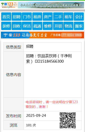 招聘:饮品茶饮师(干净利索) ☎️15184566300