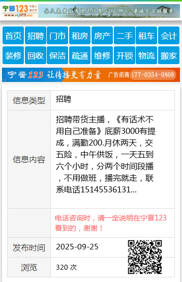 招聘带货主播,《有话术不用自己准备》底薪3000有提成,满勤200.月休两天,交五险,中午供饭,一天五到六个小时,分两个时间段播,不用做班,播完就走,联系电话15145536131 【电话咨询时,请一定说明在望奎信息网看到的,谢谢!】 |