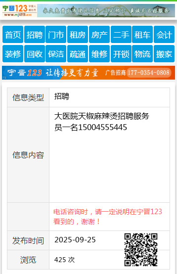 大医院天椒麻辣烫招聘服务员一名15004555445