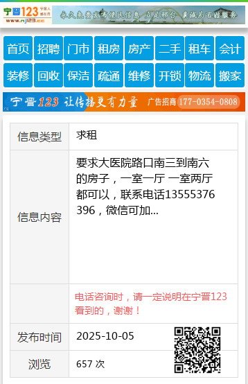 要求大医院路口南三到南六的房子,一室一厅 一室两厅都可以,联系电话13555376396,微信可加