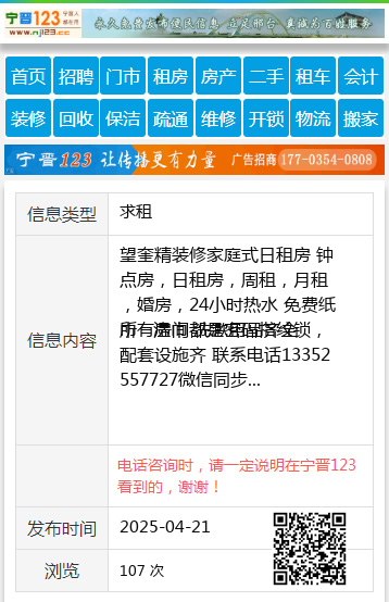所有房间都是密码指纹锁,配套设施齐 联系电话13352557727微信同步 【电话咨询时,请一定说明在望奎信息网看到的,谢谢!】 |