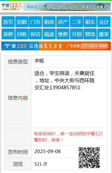 适合,学生陪读,夫妻居住,地址,中央大街与西环路交汇处13904857851